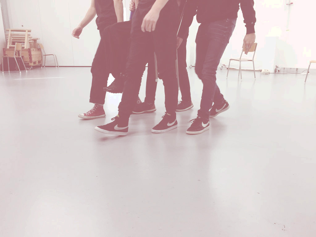 Workshop in der Schule für Gestaltung Aargau. Der Workshop vermittelte zwei Klassen auf explorative Weise Zugang zum Thema Performance.